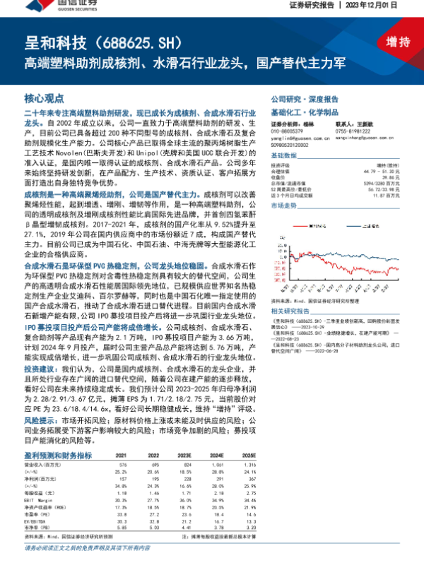 【国信证券】【20231201】高端塑料助剂成核剂、水滑石行业龙头,国产替代主力军-41页 行业研究