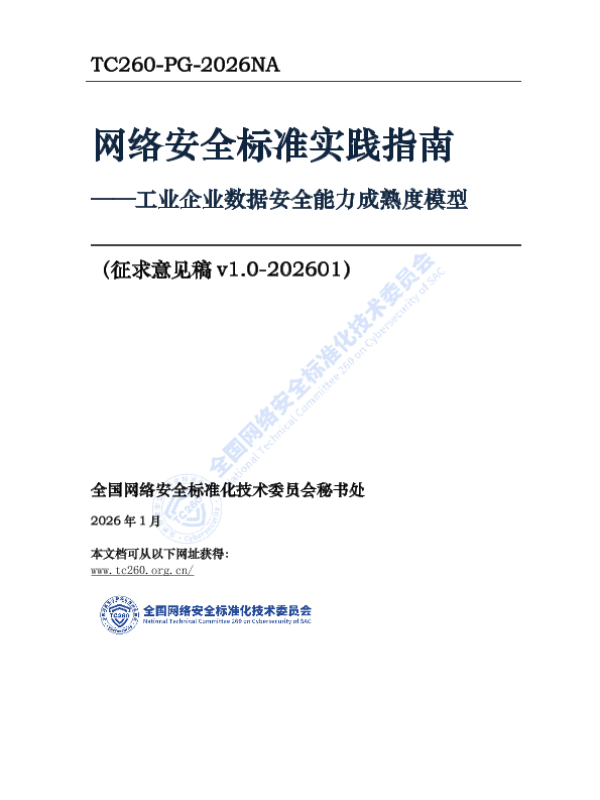 【全国网络安全标准化技术委员会秘书处】【202601】网络安全标准实践指南——工业企业数据安全能力成熟度模型-69页 指南