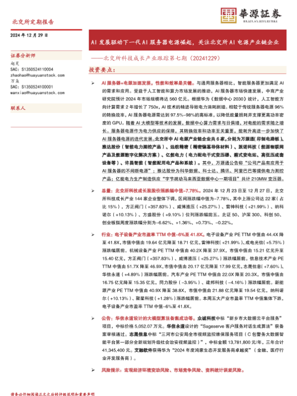 【华源证券】【20241229】北交所科技成长产业跟踪第七期:AI发展驱动下一代AI服务器电源崛起,关注北交所AI电源产业链企业-18页 行业研究