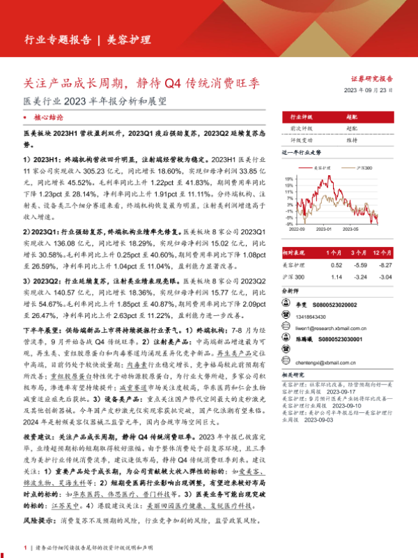 【西部证券】【20230923】医美行业2023半年报分析和展望:关注产品成长周期,静待Q4传统消费旺季-16页 行业研究