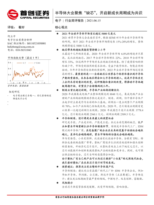 【首创证券】【20210615】半导体大会聚焦“缺芯”,开启新成长周期成为共识-2页 行业研究