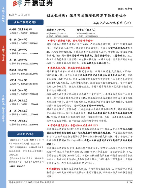 【开源证券】【20230325】工具化产品研究系列(23):创成长指数,深度布局高增长预期下的投资机会-16页 行业研究