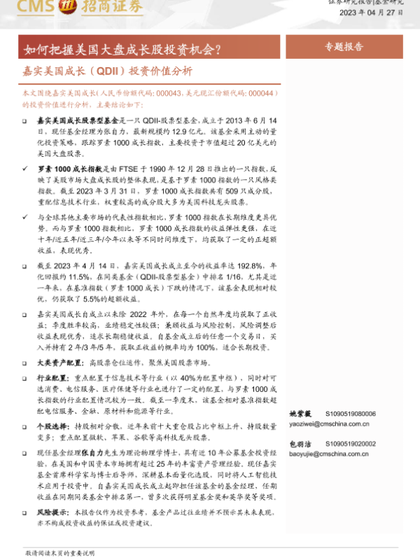 【海通证券】【20230427】嘉实美国成长(QDII)投资价值分析:如何把握美国大盘成长股投资机会?-16页 行业研究