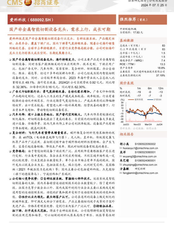 【海通证券】【20240725】国产非金属智能切割设备龙头,需求上行,成长可期-27页 行业研究