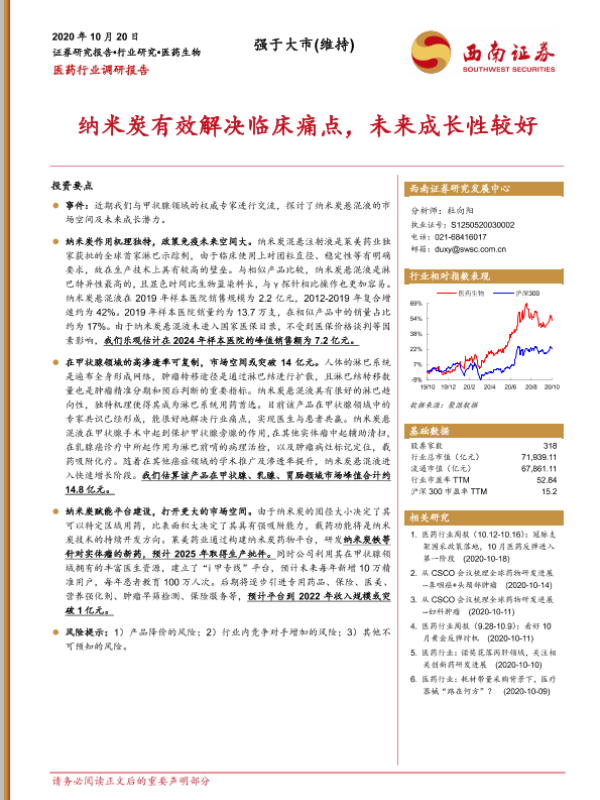 【西南证券】【20201020】纳米炭有效解决临床痛点,未来成长性较好-16页 行业研究