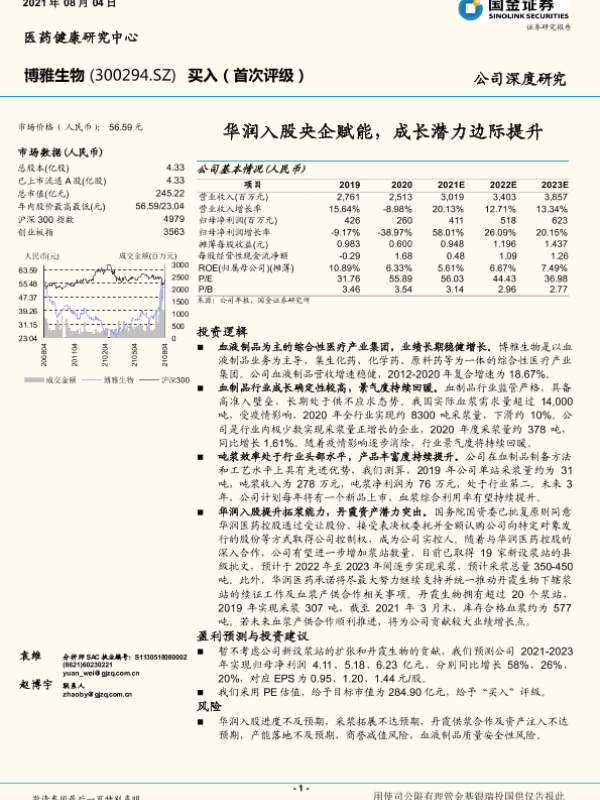 【国金证券】【20210804】国金证券-博雅生物-华润入股央企赋能,成长潜力边际提升-23页 行业研究