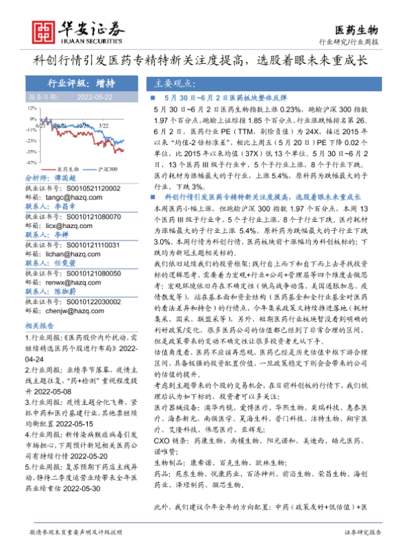 【华安证券】【20220522】医药生物行业周报:科创行情引发医药专精特新关注度提高,选股着眼未来重成长-17页 行业研究