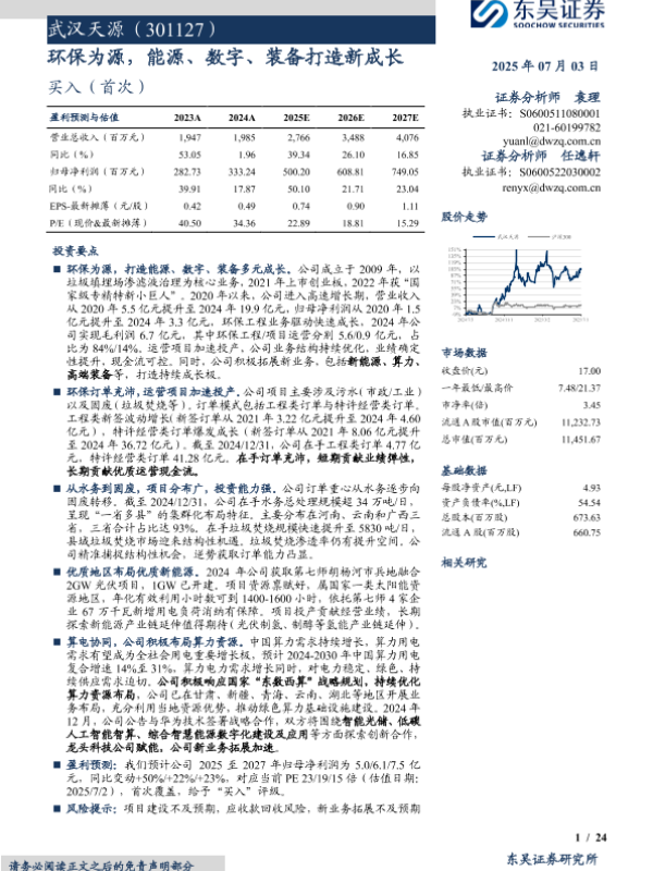 【东吴证券】【20250703】武汉天源环保为源,能源、数字、装备打造新成长-24页 公司研究