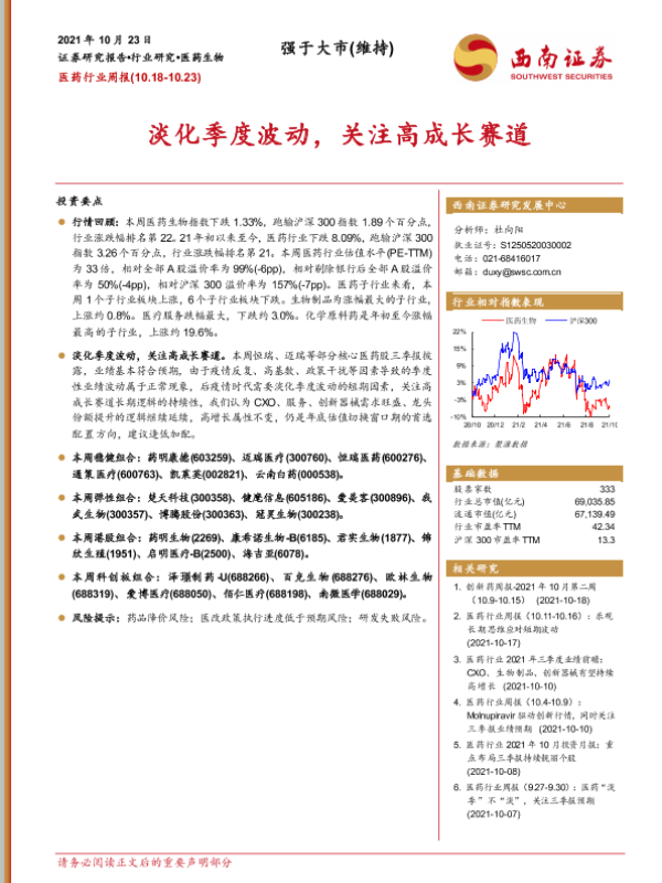 【西南证券】【20211023】医药行业周报:淡化季度波动,关注高成长赛道-36页 行业研究