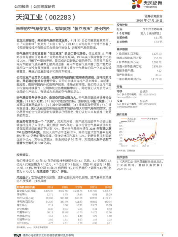 【天风证券】【20200719】未来的空气悬架龙头,有望复制“恒立液压”成长路径-19页 行业研究