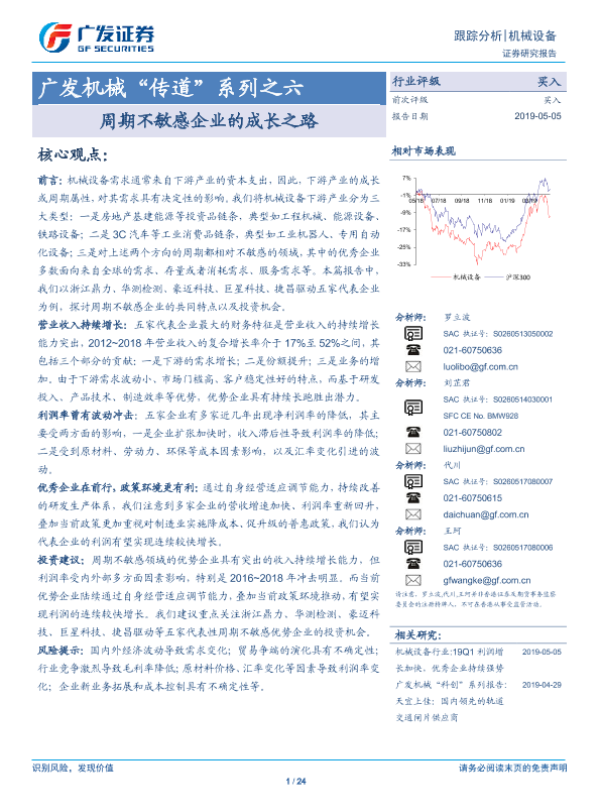 【广发证券】【20190505】广发机械“传道”系列之六:周期不敏感企业的成长之路-24页 行业研究