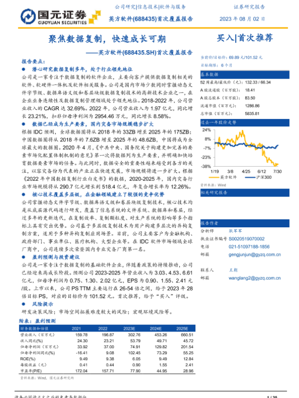 【国元证券】【20230802】聚焦数据复制,快速成长可期——英方软件(688435.SH)首次覆盖报告-35页 行业研究
