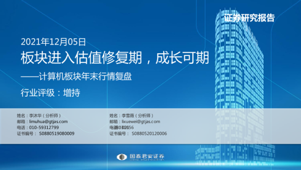 【国泰君安证券】【20211205】计算机板块年末行情复盘:板块进入估值修复期,成长可期-18页 行业研究