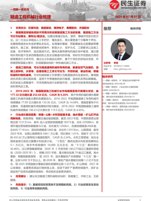 【民生证券】【20240707】20240707-民生证券-机械一周解一惑系列:隧道工程机械行业梳理-17页 行业研究