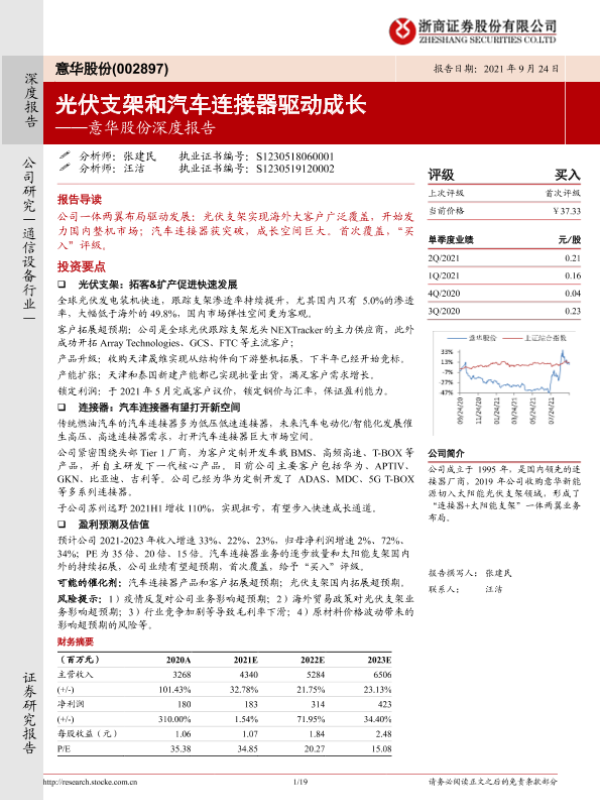 【浙商证券】【20210924】意华股份深度报告:光伏支架和汽车连接器驱动成长-19页 行业研究