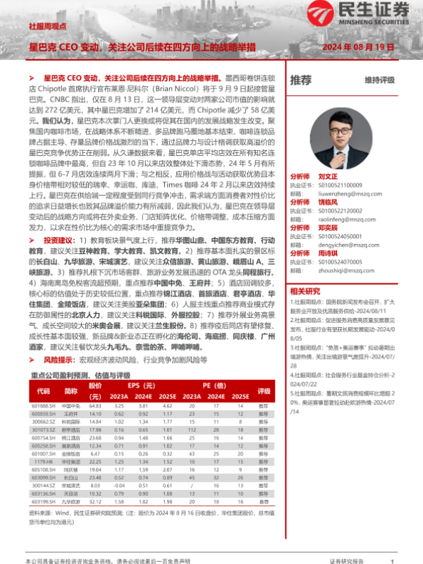 【民生证券】【20240819】社服周观点:星巴克CEO变动,关注公司后续在四方向上的战略举措-25页 行业研究