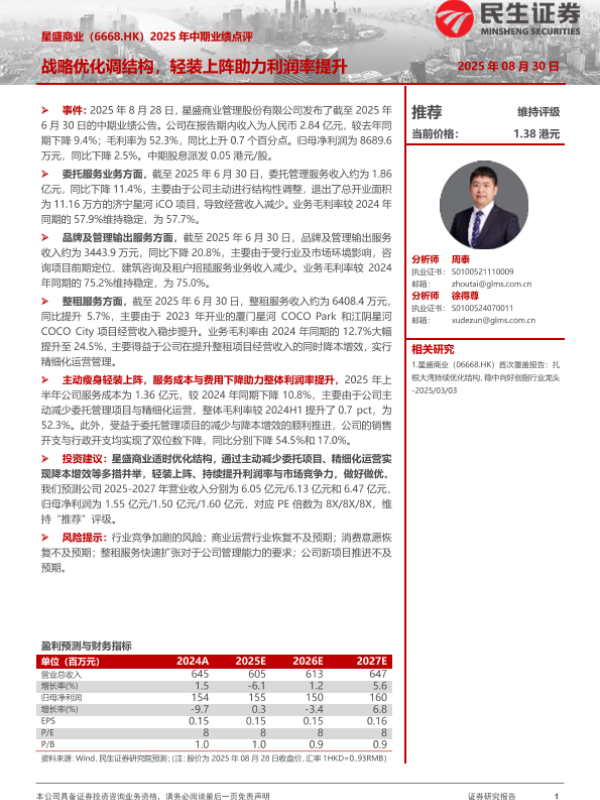 【民生证券】【20250830】星盛商业-2025年中期业绩点评-战略优化调结构 轻装上阵助力利润率提升-3页 证券期货研究报告