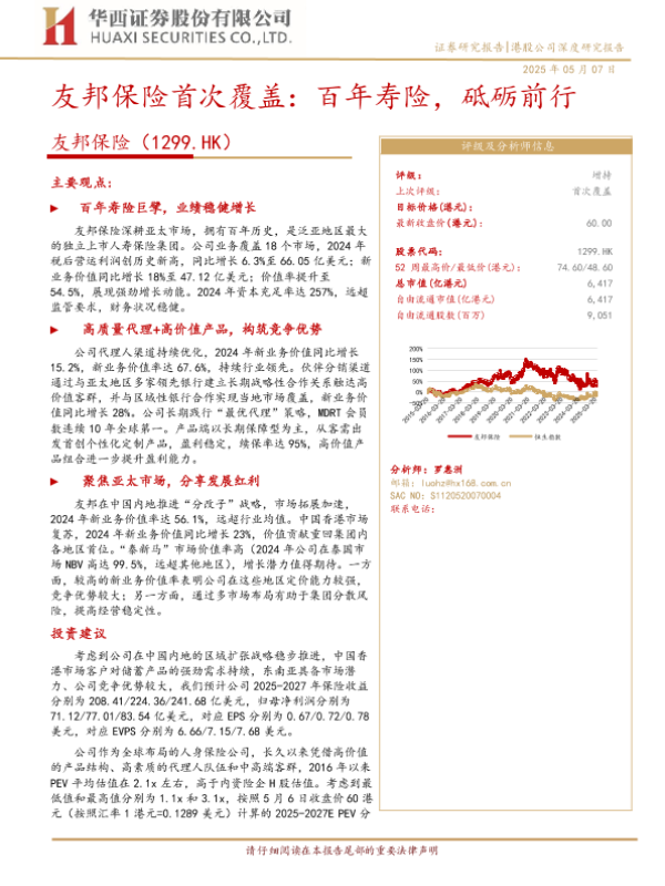 【华西证券】【20250507】友邦保险首次覆盖:百年寿险,砥砺前行-30页 公司研究