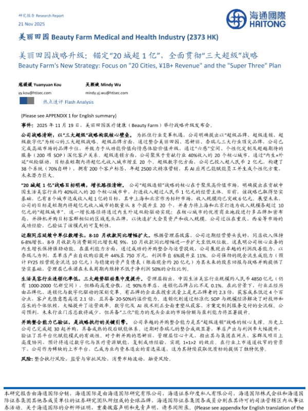 【海通国际】【202511】美丽田园战略升级:锚定“20城超1亿”,全面贯彻“三大超级”战略-10页 证券期货研究报告
