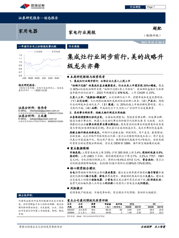 【国信证券】【20210104】20210104-国信证券-家电行业周报:集成灶行业阔步前行,美的战略升级龙头亦舞-9页 行业研究