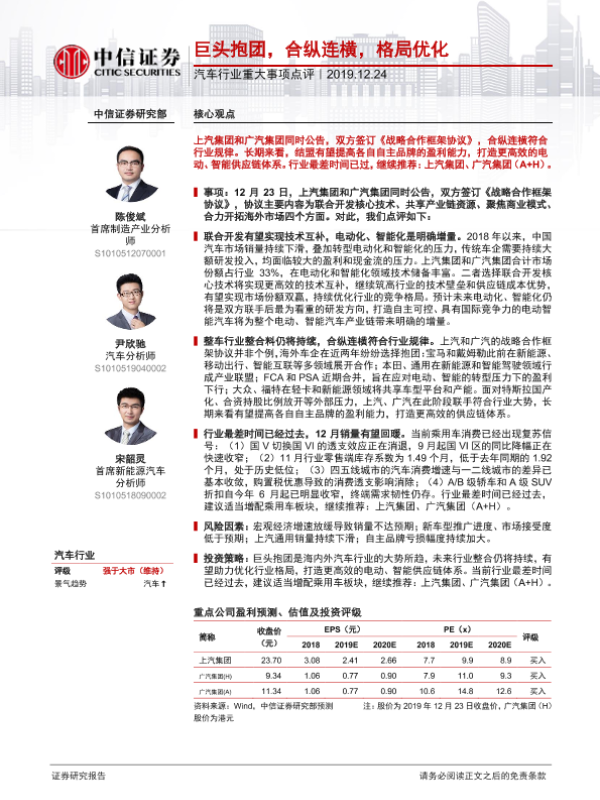 【中信证券】【20191224】汽车行业重大事项点评:巨头抱团,合纵连横,格局优化-2页 行业研究