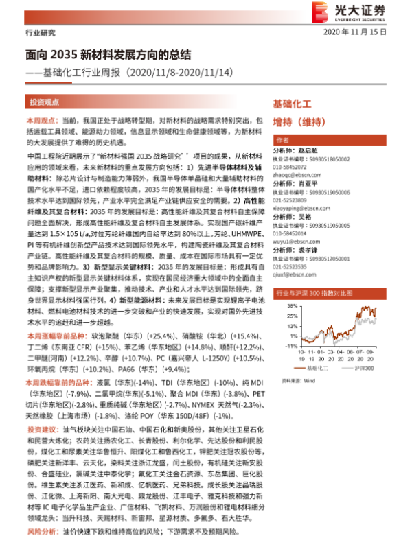 【光大证券】【20201115】基础化工行业周报:面向2035新材料发展方向的总结-25页 行业研究