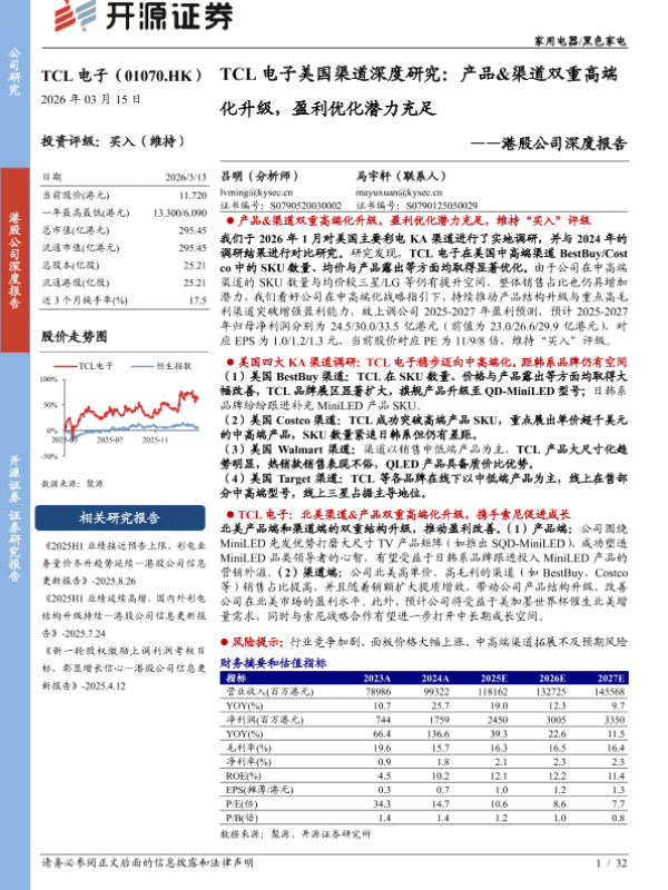 【开源证券】【202603】TCL电子美国渠道深度研究:产品&渠道双重高端化升级,盈利优化潜力充足-32页 公司研究