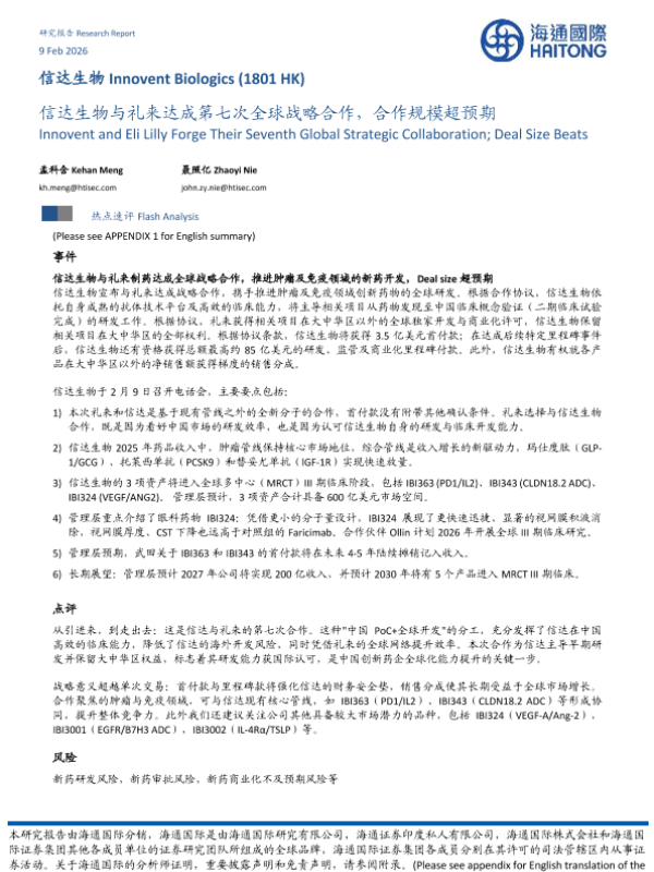 【海通国际】【202602】信达生物与礼来达成第七次全球战略合作_合作规模超预期-9页 证券期货研究报告