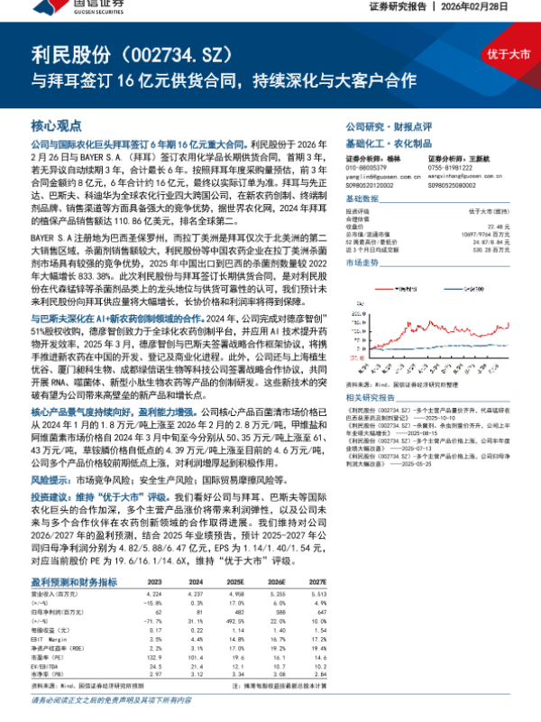 【国信证券】【202602】与拜耳签订16亿元供货合同,持续深化与大客户合作-6页 证券期货研究报告