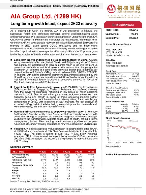 【招银国际】【20221031】友邦保险01299.HK Longterm growth intact, expect 2H22 recovery-44页 行业研究
