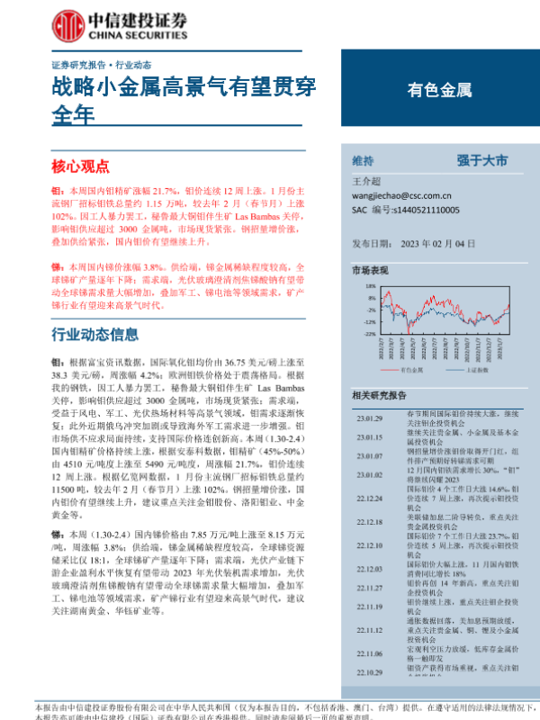 【中信建投证券】【20230204】有色金属行业动态:战略小金属高景气有望贯穿全年-19页 行业研究