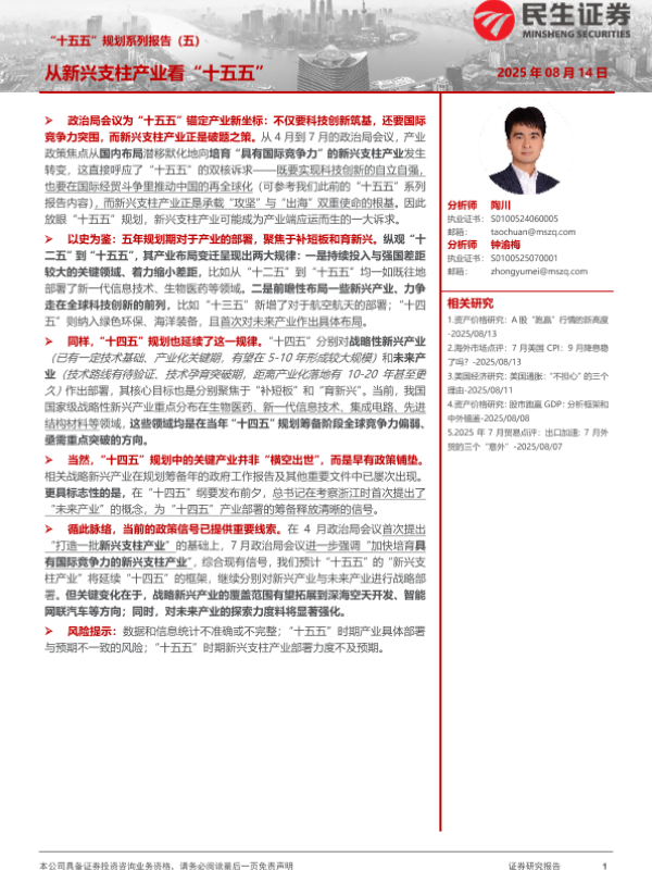 【民生证券】【202508】“十五五”规划系列报告(五):从新兴支柱产业看“十五五”-12页 证券期货研究报告