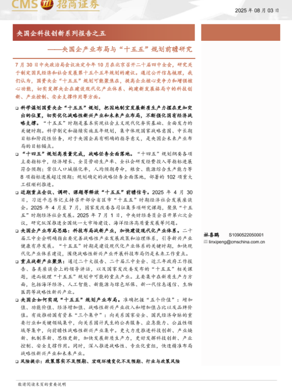 【海通证券】【202508】央国企产业布局与“十五五”规划前瞻研究-18页 证券期货研究报告
