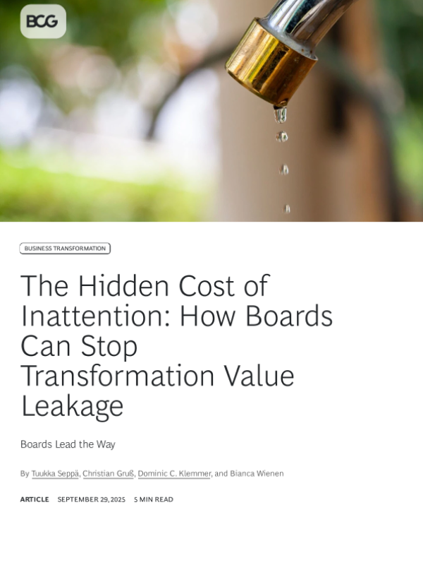 【Boston Consulting Group】【202509】The Hidden Cost of Inattention How Boards Can Stop Transformation Value Leakage-5页 其他