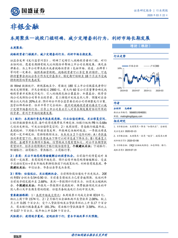 【国盛证券】【20200322】非银金融行业周报:本周聚焦—战投门槛明确,减少定增套利行为,利好市场长期发展-12页 行业研究