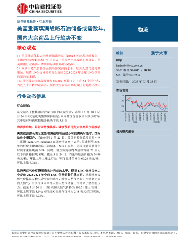 【中信建投证券】【20230328】物流行业:美国重新填满战略石油储备或需数年,国内大宗商品上行趋势不变-20页 行业研究