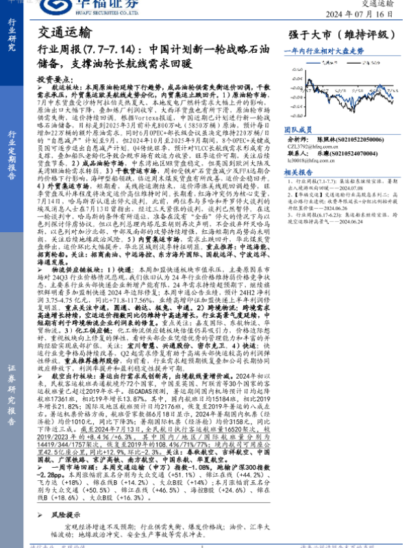 【华福证券】【20240716】中国计划新一轮战略石油储备,支撑油轮长航线需求回暖-15页 行业研究