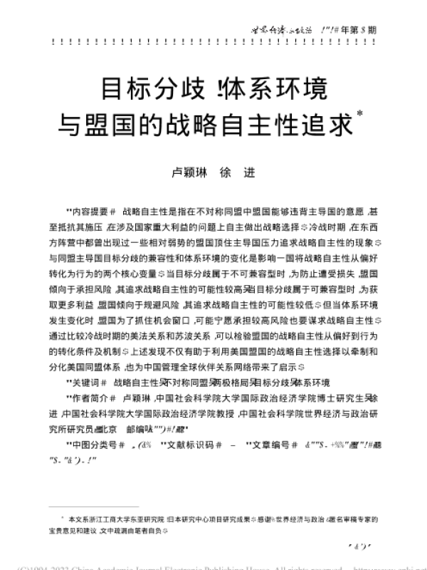 【社科院】【2023】目标分歧_体系环境与盟国的战略自主性追求-21页 学术论文