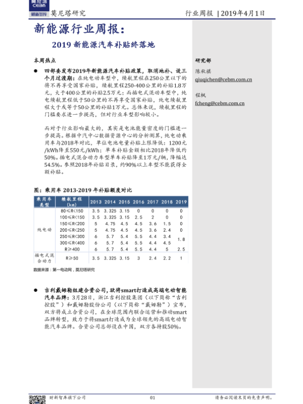 【莫尼塔研究】【20190401】2019新能源汽车补贴终落地-9页 行业研究