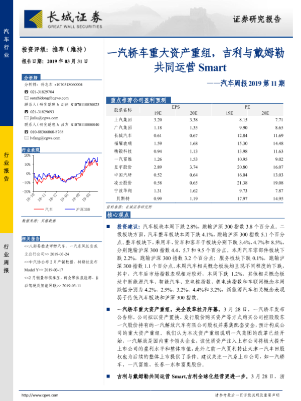 【长城证券】【20190331】汽车周报2019第11期:汽轿车重大资产重组,吉利与戴姆勒共同运营Smart-15页 行业研究