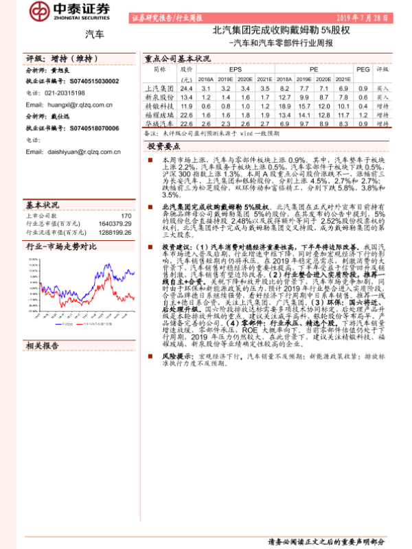 【中泰证券】【20190728】汽车和汽车零部件行业周报:北汽集团完成收购戴姆勒5%股权-9页 行业研究