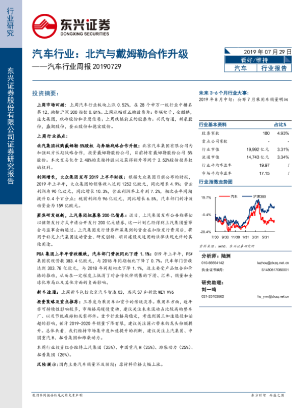 【东兴证券】【20190729】20190729-东兴证券-汽车行业周报:北汽与戴姆勒合作升级-16页 行业研究