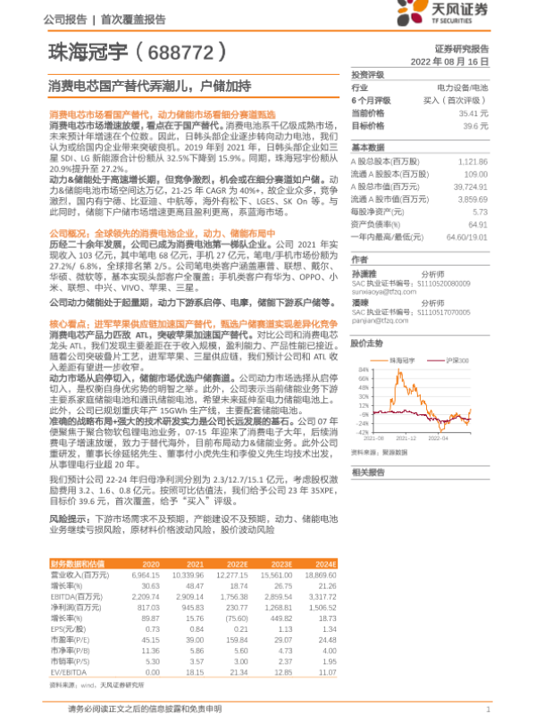 【天风证券】【20220816】消费电芯国产替代弄潮儿,户储加持-30页 行业研究
