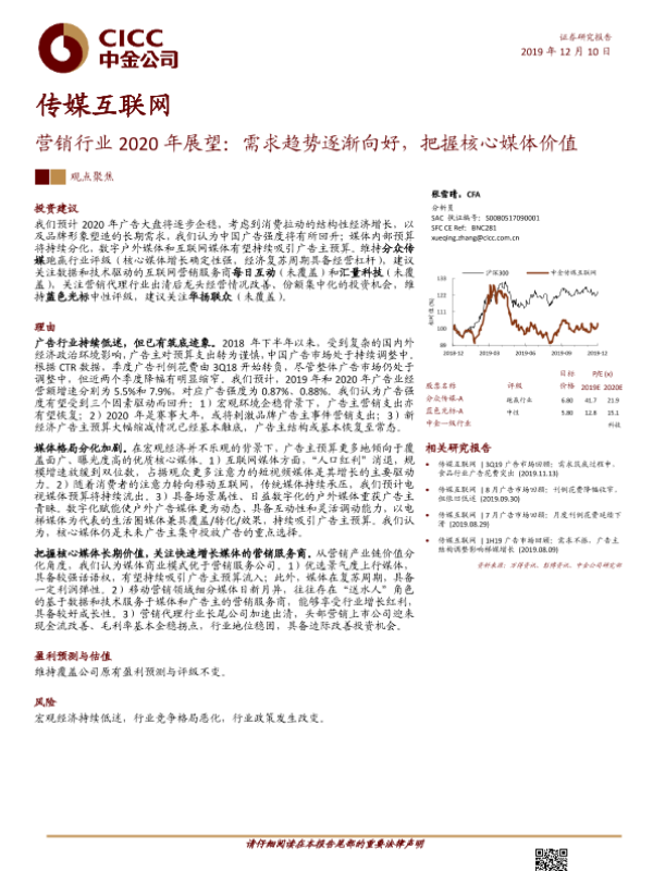 【中金公司】【20191210】传媒互联网营销行业2020年展望:需求趋势逐渐向好,把握核心媒体价值-21页 行业研究