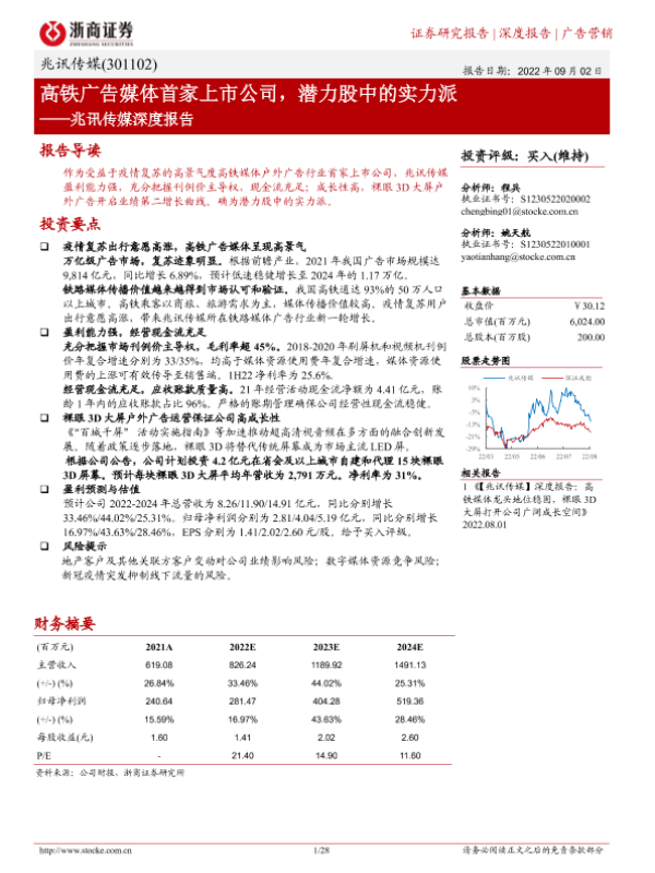 【浙商证券】【20220902】兆讯传媒深度报告:高铁广告媒体首家上市公司,潜力股中的实力派-28页 行业研究