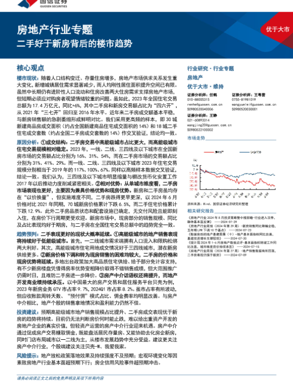 【国信证券】【20240730】2024-07-30-房地产行业专题-二手好于新房背后的楼市趋势-33页 行业研究