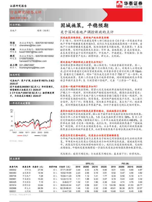 【华泰证券】【20200716】关于深圳房地产调控新政的点评:因城施策,平稳预期-10页 行业研究