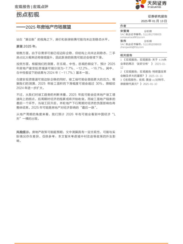 【天风证券】【20250113】2025年房地产市场展望:拐点初现-17页 宏观策略
