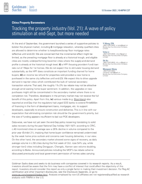 【Beijing Gao Hua Securities Company Limited】【20221012】A wave of policy stimulation at end-Sept, but more needed-20页 行业研究
