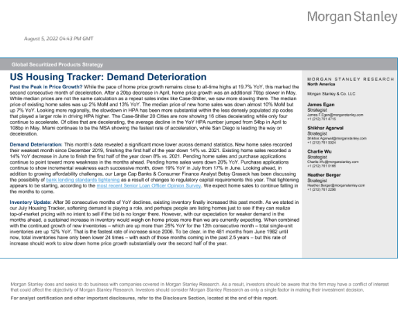 【Morgan Stanley】【20220805】US Housing Tracker Demand Deterioration-30页 行业研究
